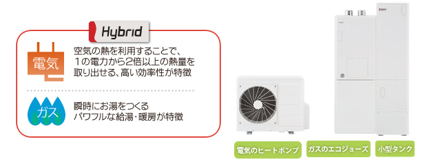 時間帯や外の気温により電気とガスのどちらかお得に使えるのかを自動で切り替えしてくれます。